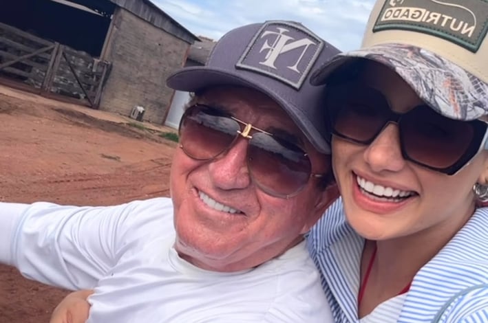 Cantor de 74 anos e Calita Franciele, de 23, oficializam união em propriedade milionária no Mato Grosso