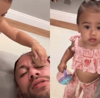 O jogador Neymar encantou seus seguidores ao compartilhar um momento carinhoso com sua filha Mavie, de um ano e quatro meses, em suas redes sociais nesta quarta-feira (26). Nas imagens, Mavie aparece brincando com uma esponja de maquiagem, enquanto o pai a incentiva a usá-la nele. Em seguida, Neymar elogia o visual da filha, que posa para as fotos.